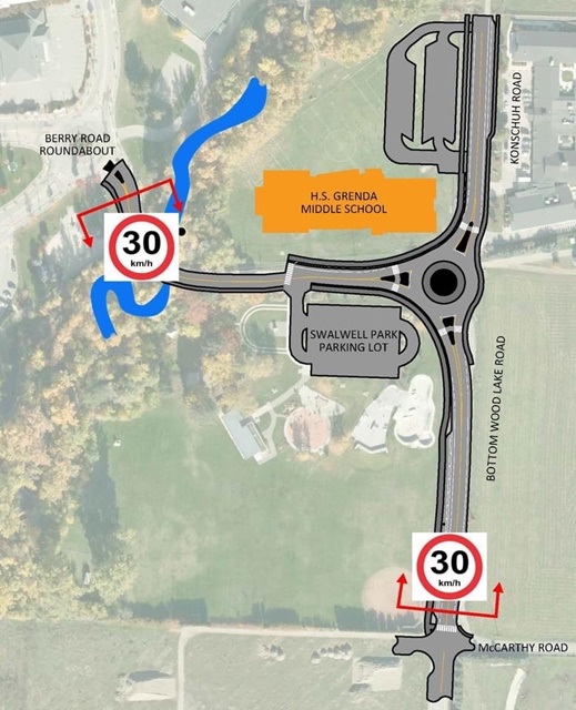 As an additional warning to Lake Country motorists, there’s a new school zone surrounding the new H.S. Grenda school site east of the Berry Road Roundabout, north of McCarthy Road and encompassing Konshuh Road.
