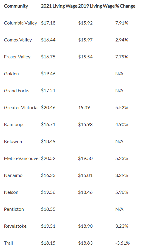 All of the living wages listed are higher than B.C.’s minimum wage of $15.20 an hour.