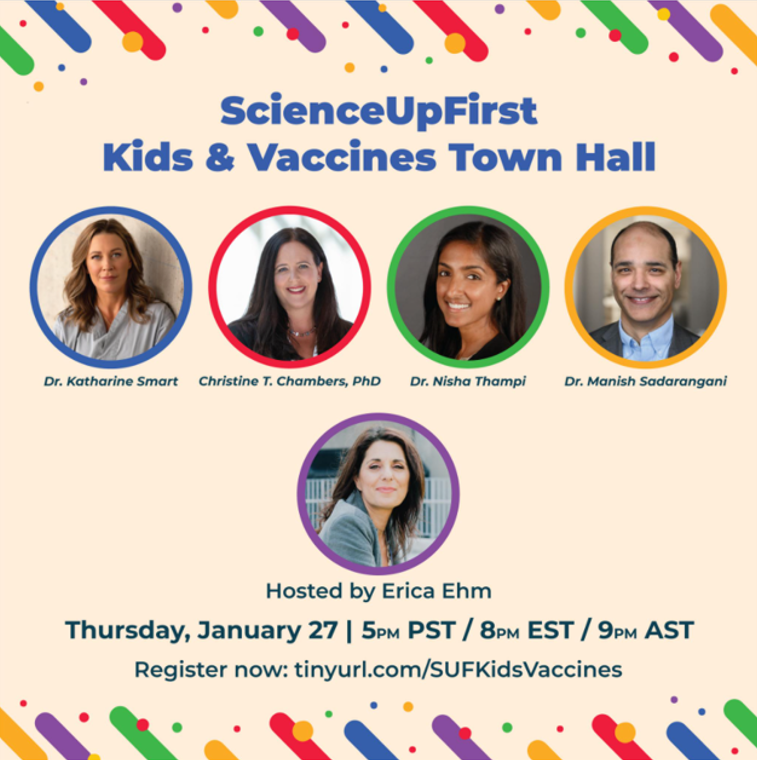 Anyone who wishes to watch the ScienceUpFirst Kids & Vaccines Town Hall can register here. Questions for the experts can also be submitted through that portal.