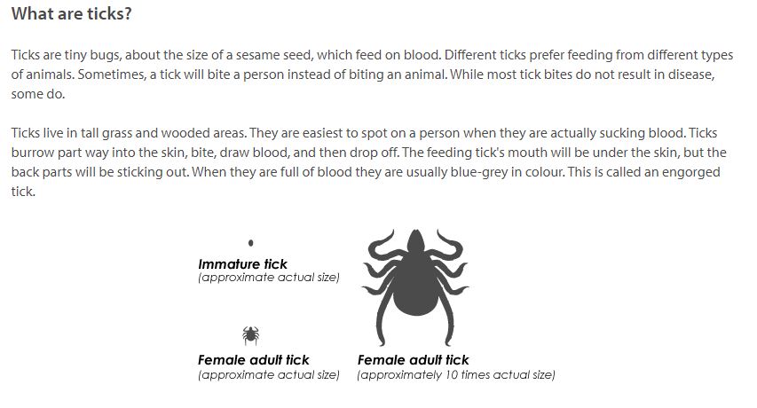 While ticks are common in the Interior Health region, most are the wood tick (Dermacentor andersoni) which do not carry the Lyme disease bacteria. The wood tick can carry other diseases such as Rocky Mountain spotted fever, although it is rare.