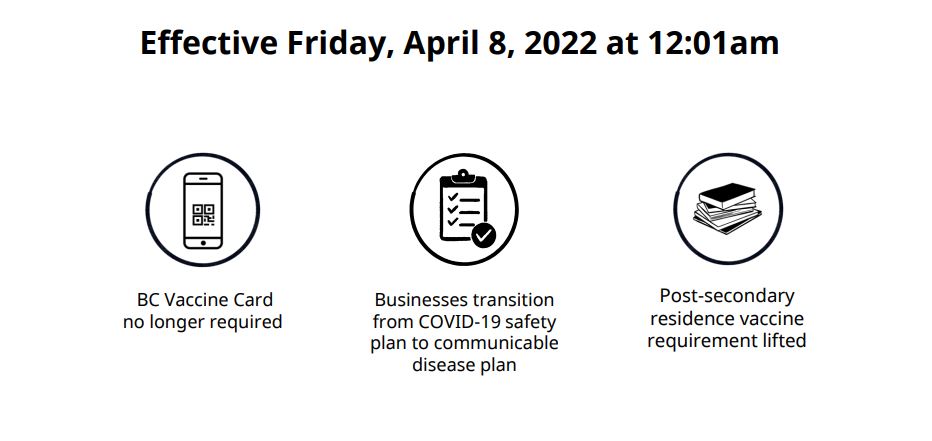 British Columbians will no longer need to show their B.C. Vaccine Card to get into restaurants and certain events as of 12:01 a.m. this Friday (Apr. 8).
