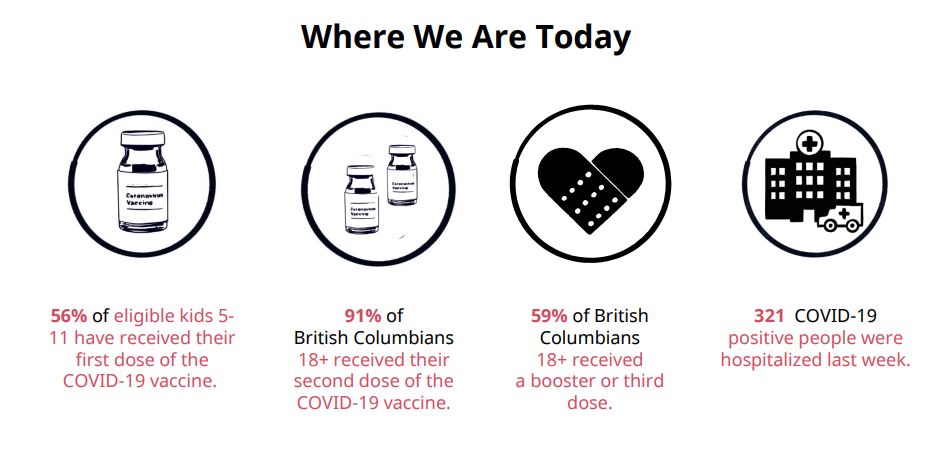 Dr. Henry said the card requirement can be lifted based on the most recent figures showing 91 per cent of British Columbians 18 and older have received two doses of a COVID-19 vaccine and 59 percent of that age group have had a booster shot.