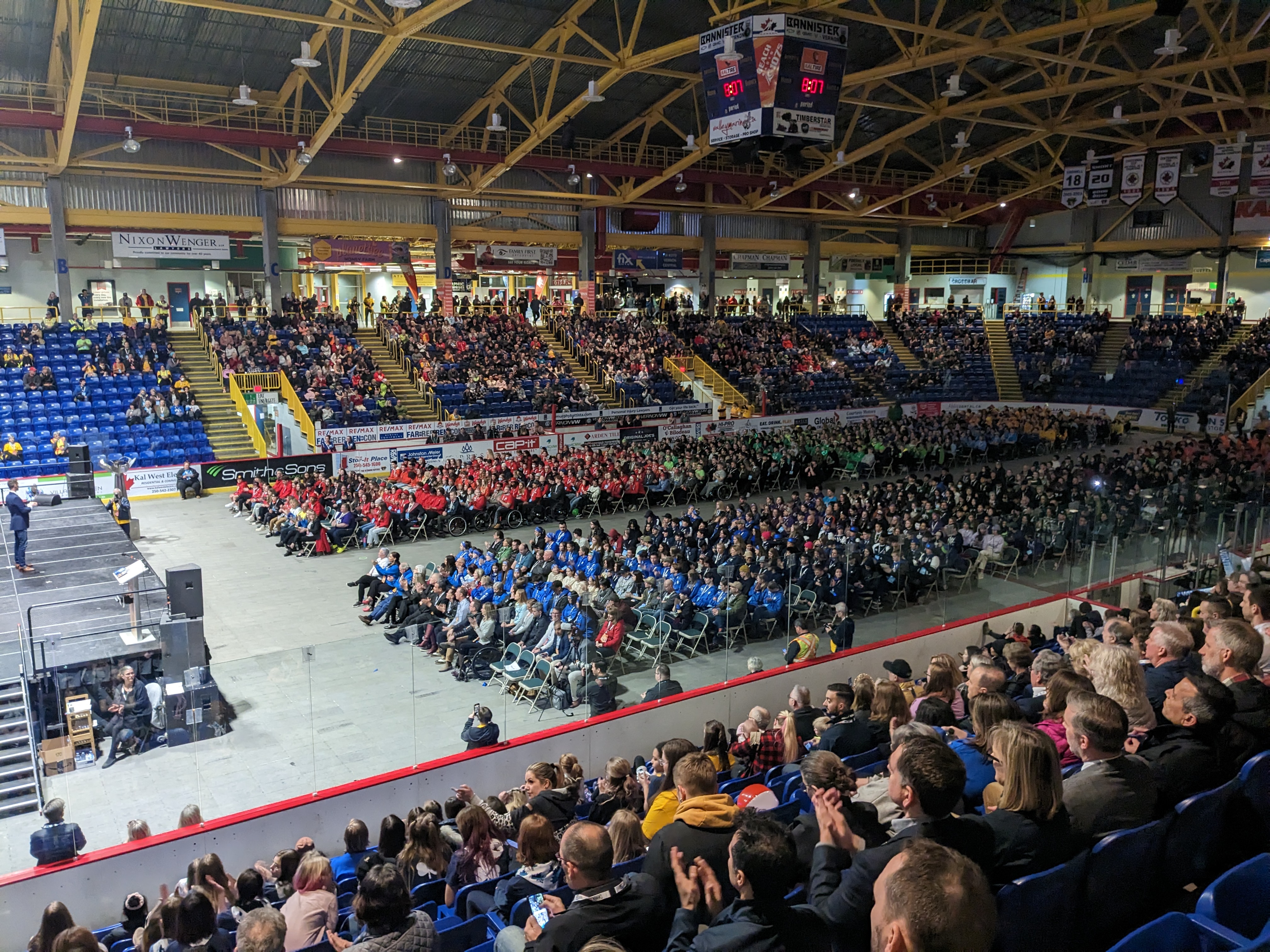Photo by Liam Verster / Vernon MattersA series of speakers addressed the athletes and the crowd after the seats at te arena had been filled.