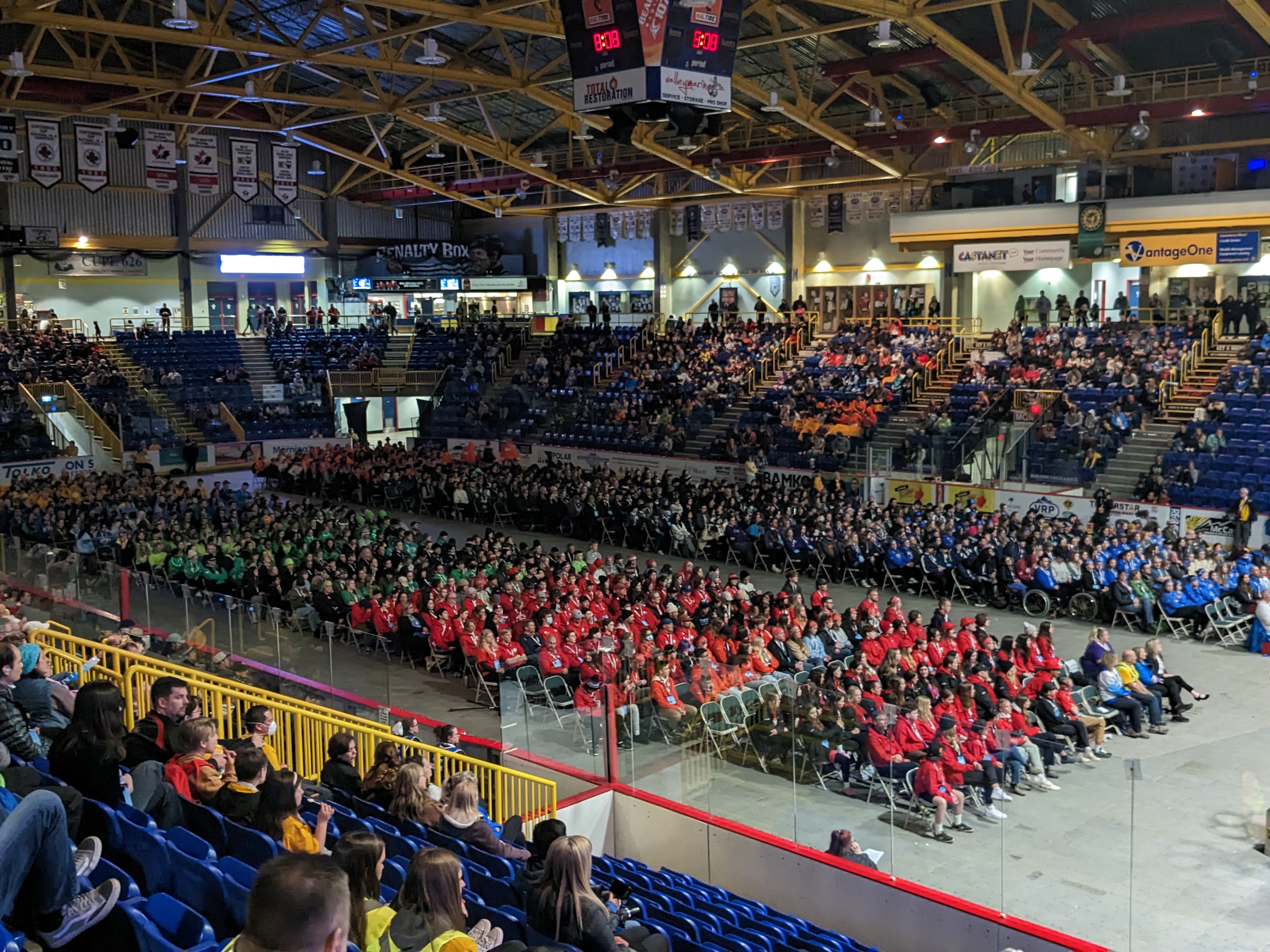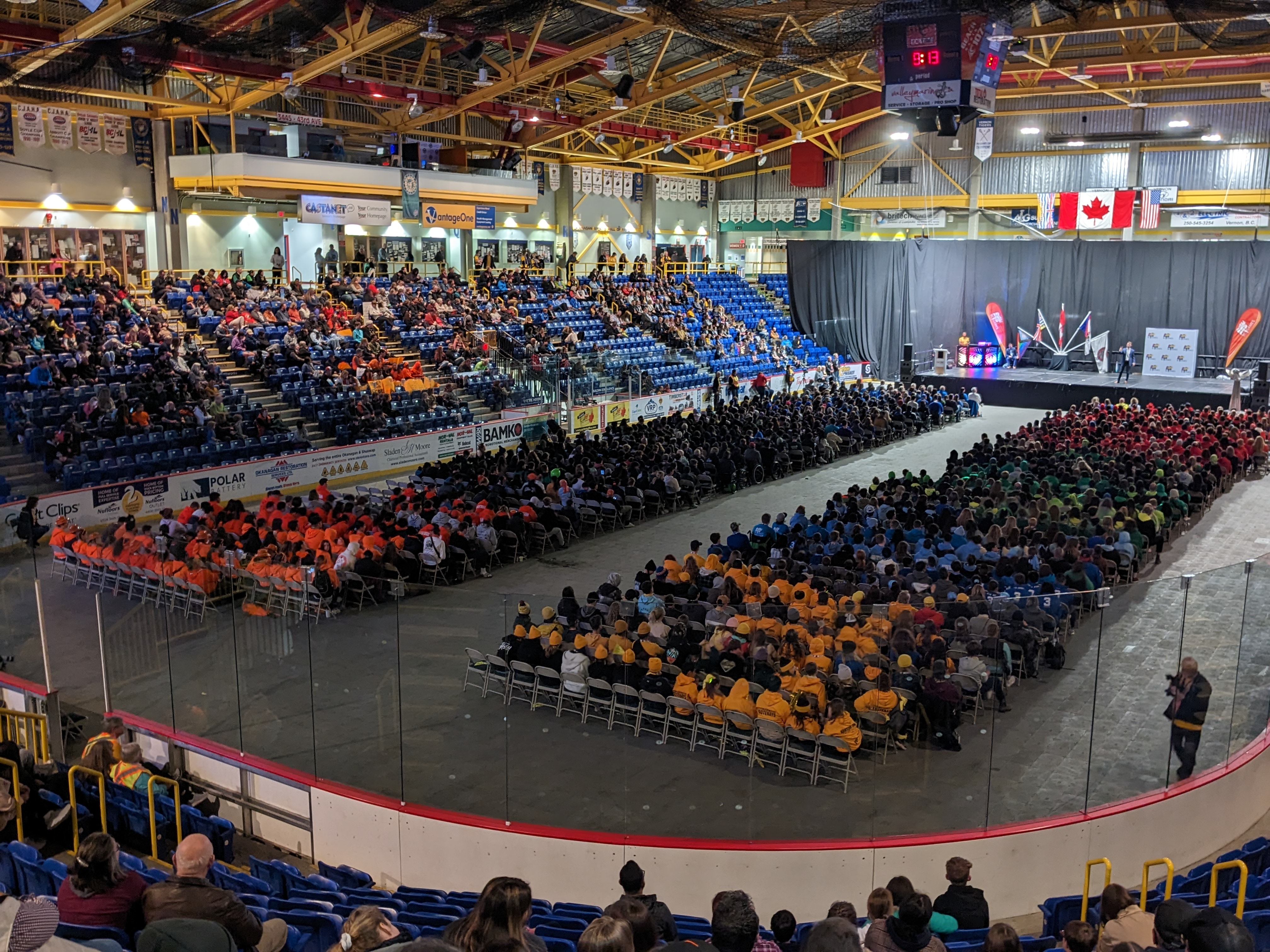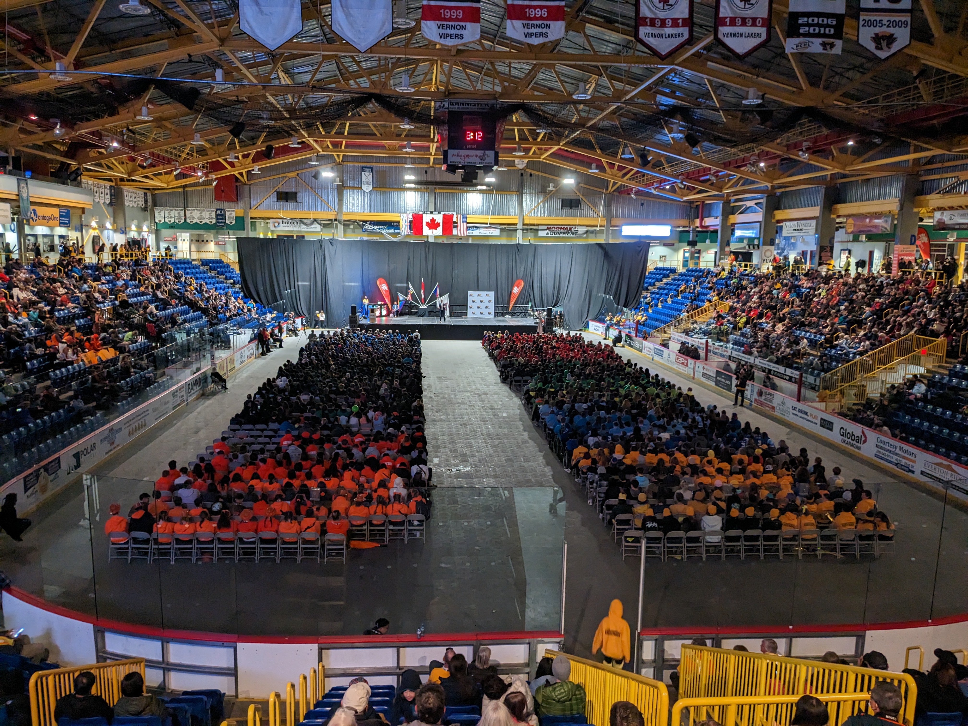 Roughly 900 youth athletes from across B.C. filled the rink at Kal Tire Place for the opening ceremony of the 2022 Greater Vernon B.C. Winter Games (photo by Liam Verster / Vernon Matters)