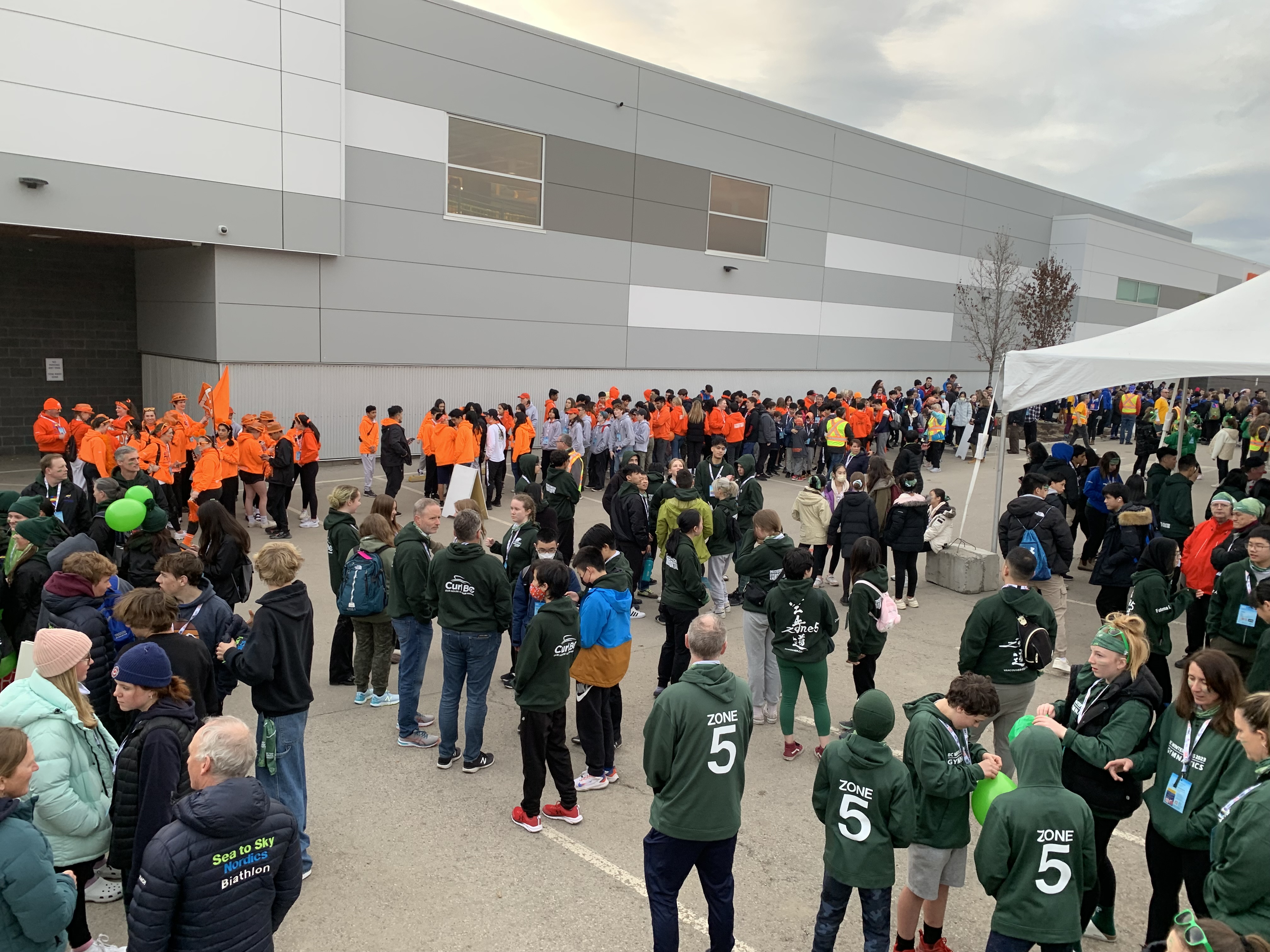 The youth athletes waiting outside Kal Tire Place ahead of the opening ceremony for the Greater Vernon B.C. Winter Games (photo by Liam Verster)