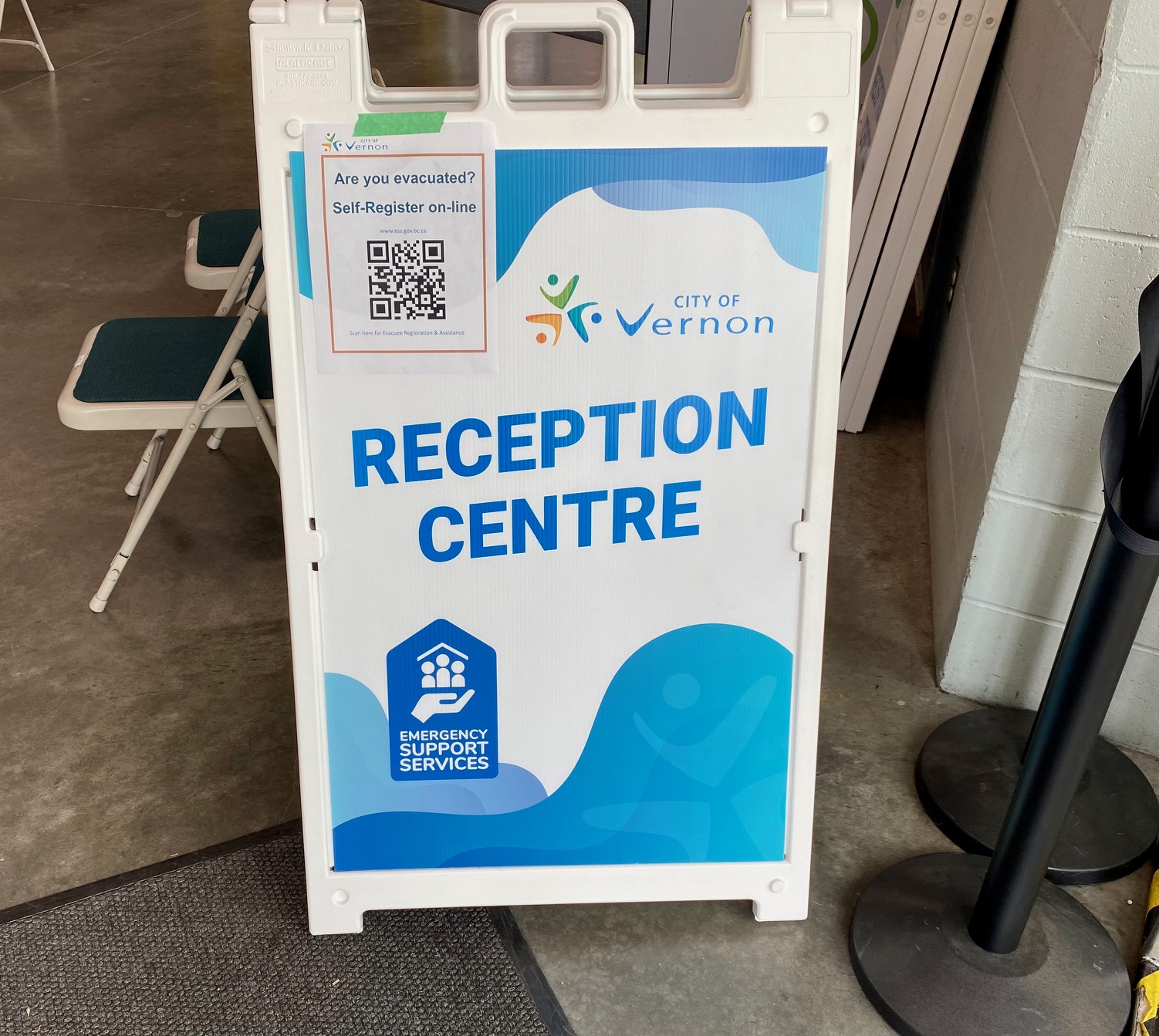 Kal Tire Place is set-up to handle evacuees (Vernon Matters photo)Cam and Leslie Leslie were evacuated late Thursday night from Wilson’s Landing, arriving at the emergency reception site around midnight.