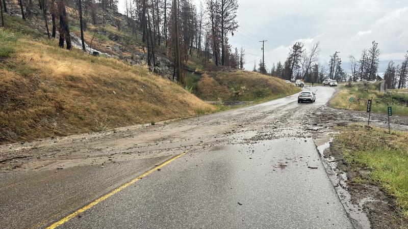 With the overland flooding on Westside Road Friday, August 15, The Regional District of Central Okanagan reminds the public that areas impacted by wildfires have a higher likelihood of overland flow, landslides and flooding as vegetation burned in fires are not able to absorb rainfall.
