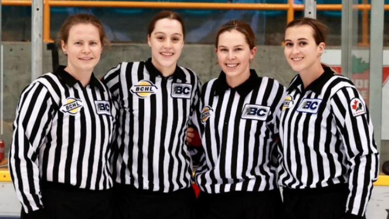 Four BC Hockey League (BCHL) officials became the first all-female officiating crew to work a game at the Canadian Junior A level when they officiated a game between the Langley Rivermen and the Surre...
