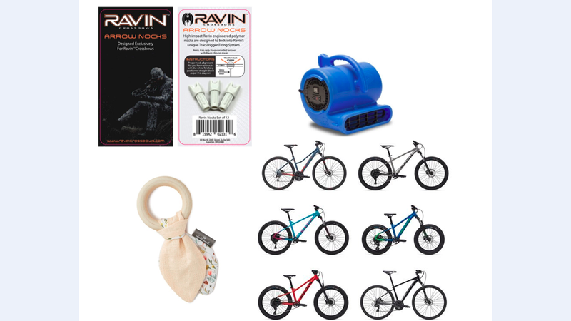 Crossbow nocks, mountain bike, fan and teether product recalls issued